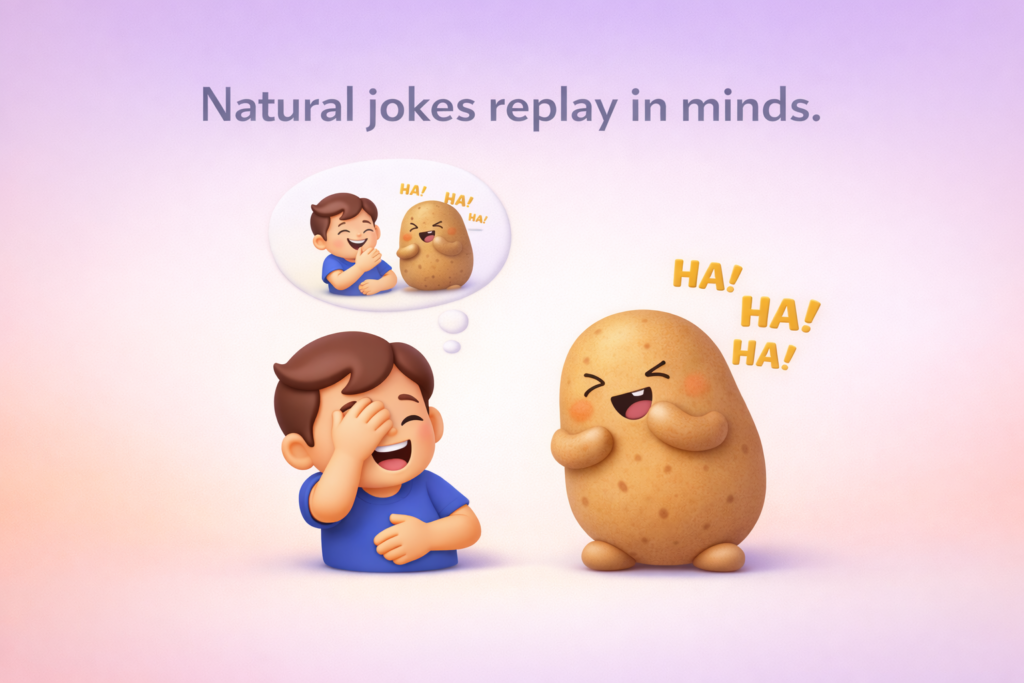 - Natural jokes replay in minds.